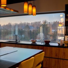 Z zewnątrz – zamknięty. Jakby nie chciał niczego zdradzić. Z wewnątrz – całkowicie otwarty. Na światło. Na krajobraz. Na spokój.