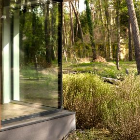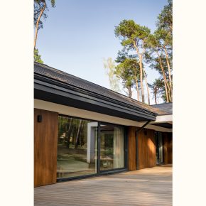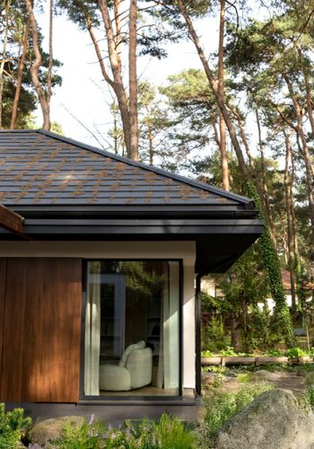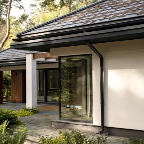 - Szklenia o podwyższonej izolacyjności i ciemnych, niemal niewidocznych ramkach
